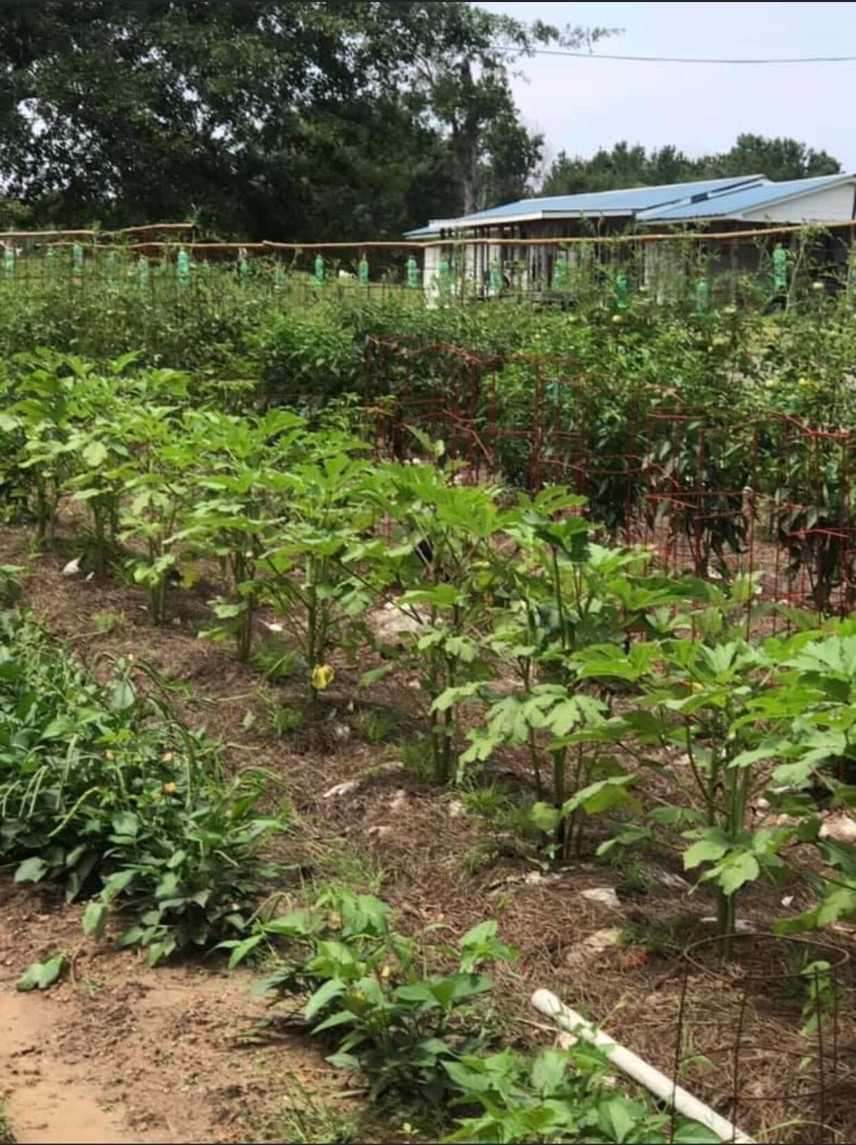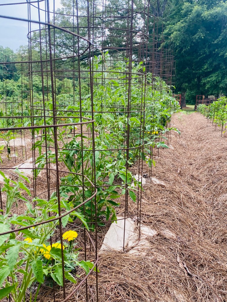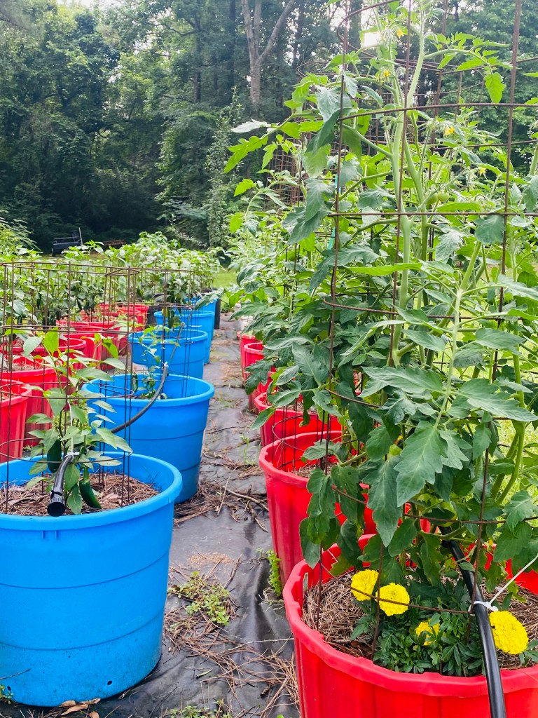 Here is a view of our garden, we planted May 12th this year due to the late freeze in April. I have my main garden and I also have a garden planted in pots with a total of over 100 plants this year.